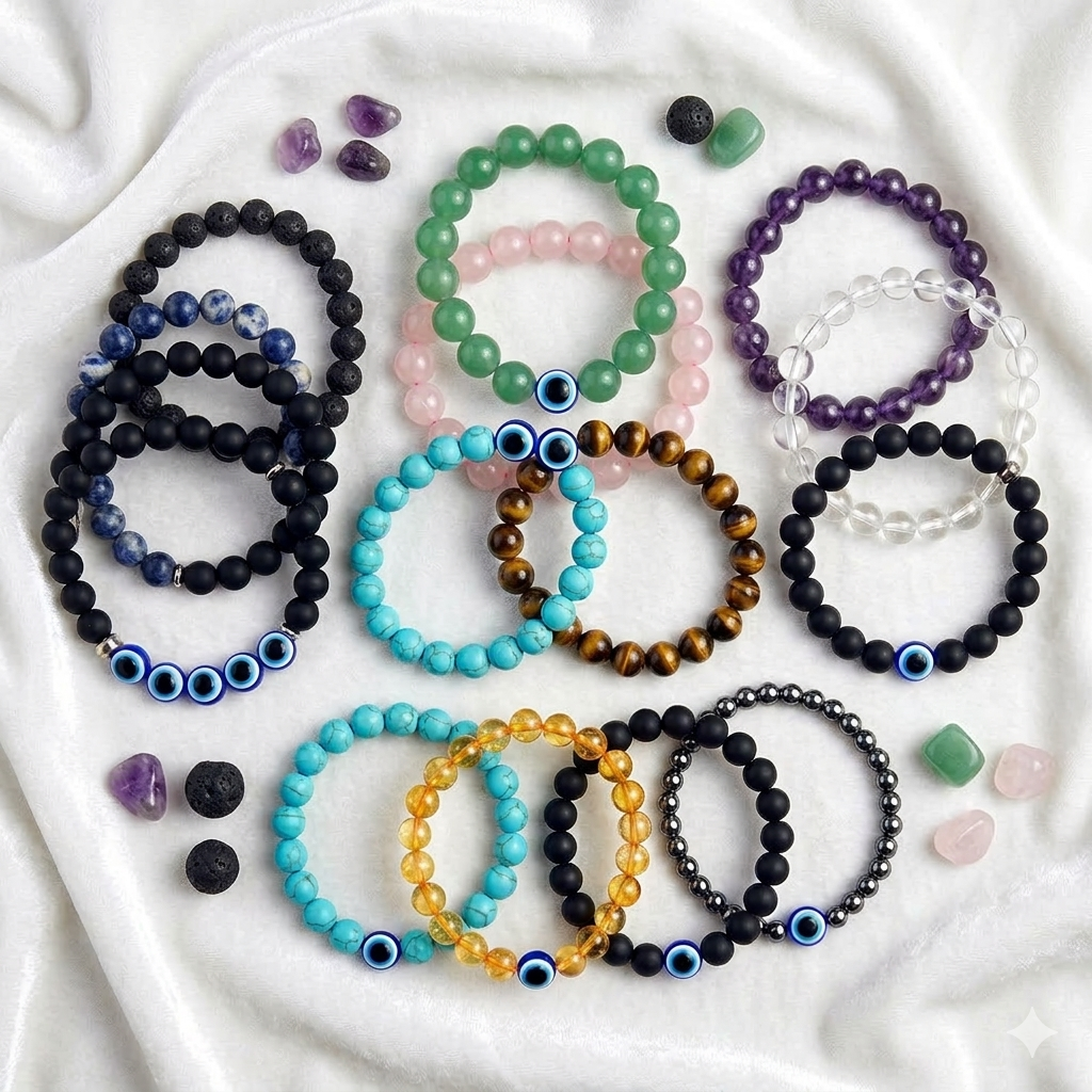 Protect your energy and enhance spiritual balance with this Natural Amethyst Crystal Bracelet featuring an Evil Eye charm. Crafted with 8mm natural stone beads and a stretchable elastic band, this bracelet is perfect for protection, meditation, and everyday spiritual wear.